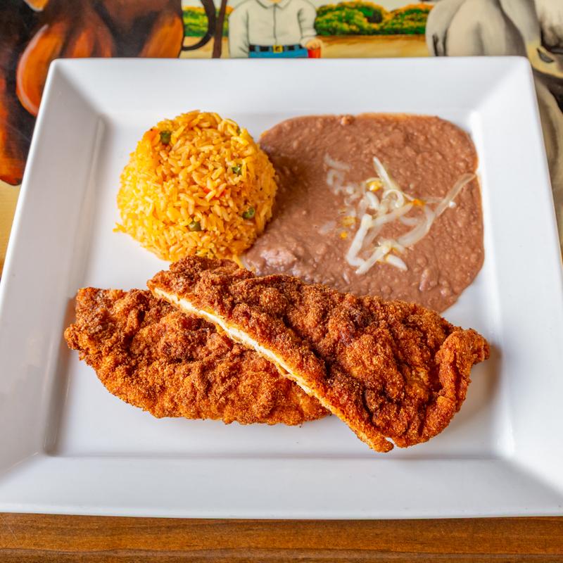 Large flour tortilla, deep fried and stuffed with cheese, guacamole served with rice, refried beans, lettuce, and served with your choice of chicken or ground meat, served with rice and refried beans, your choice of chicken or shredded or ground beef, or vegetables.