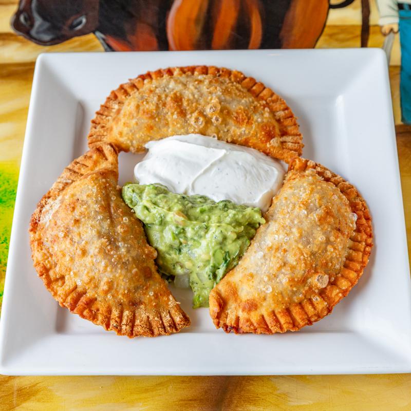 Three flour homemade empanadas, choice of ground beef or chicken. Served with a side of guacamole & sour cream.